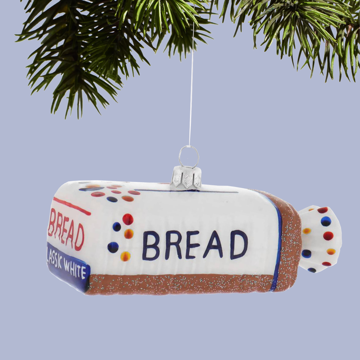 This glass ornament is inspired by one of Corita's favorite subjects: wonderbread.